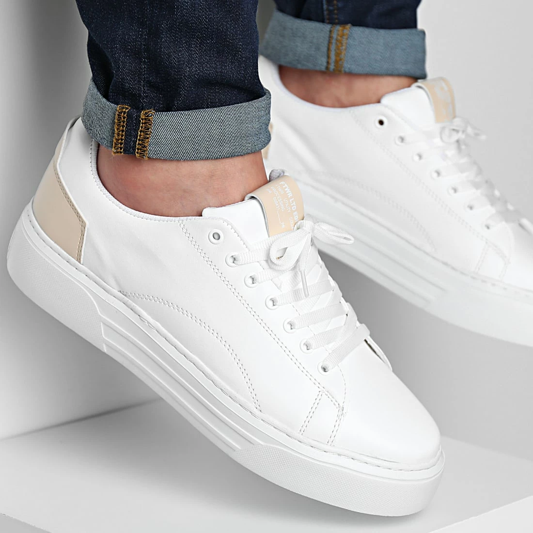 Grosses soldes 🛒 Baskets Détails Beige 2344 Blanc de LBO ✨