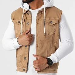 Remise 🎉 Veste Jean A Capuche 2263 Camel Denim Blanc de LBO 🔥