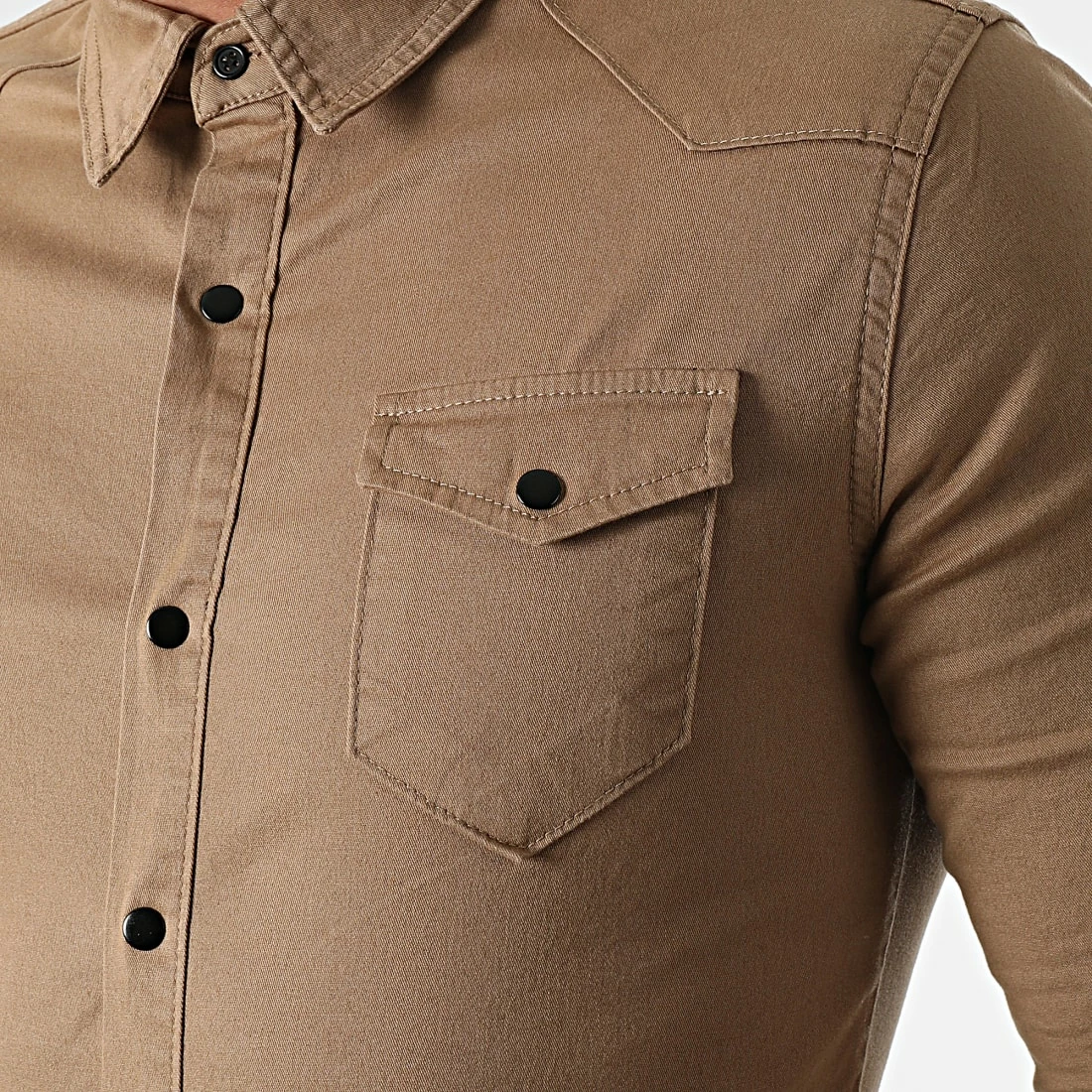 • Chemise en jean style utilitaire à col classique