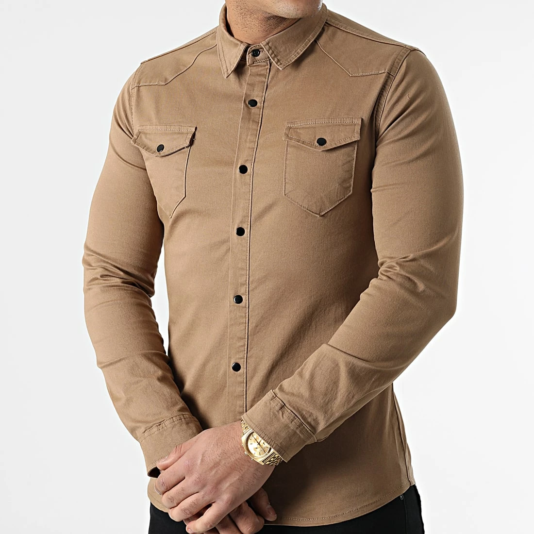 • Deux poches poitrine à bouton pression -