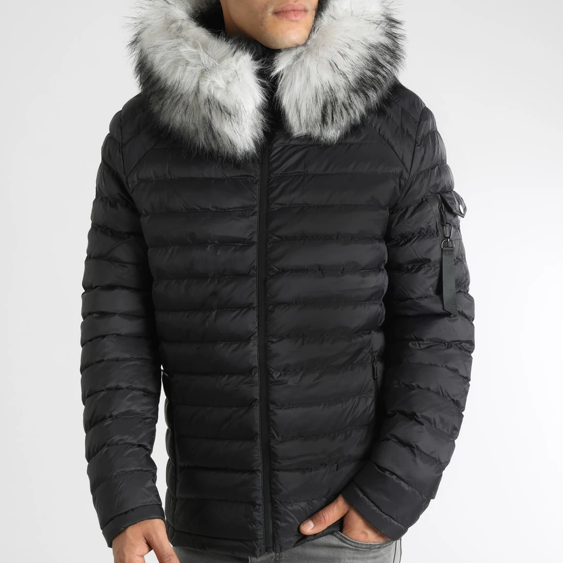 • Doudoune urbaine rembourrée avec capuche à fourrure synthétique amovible
