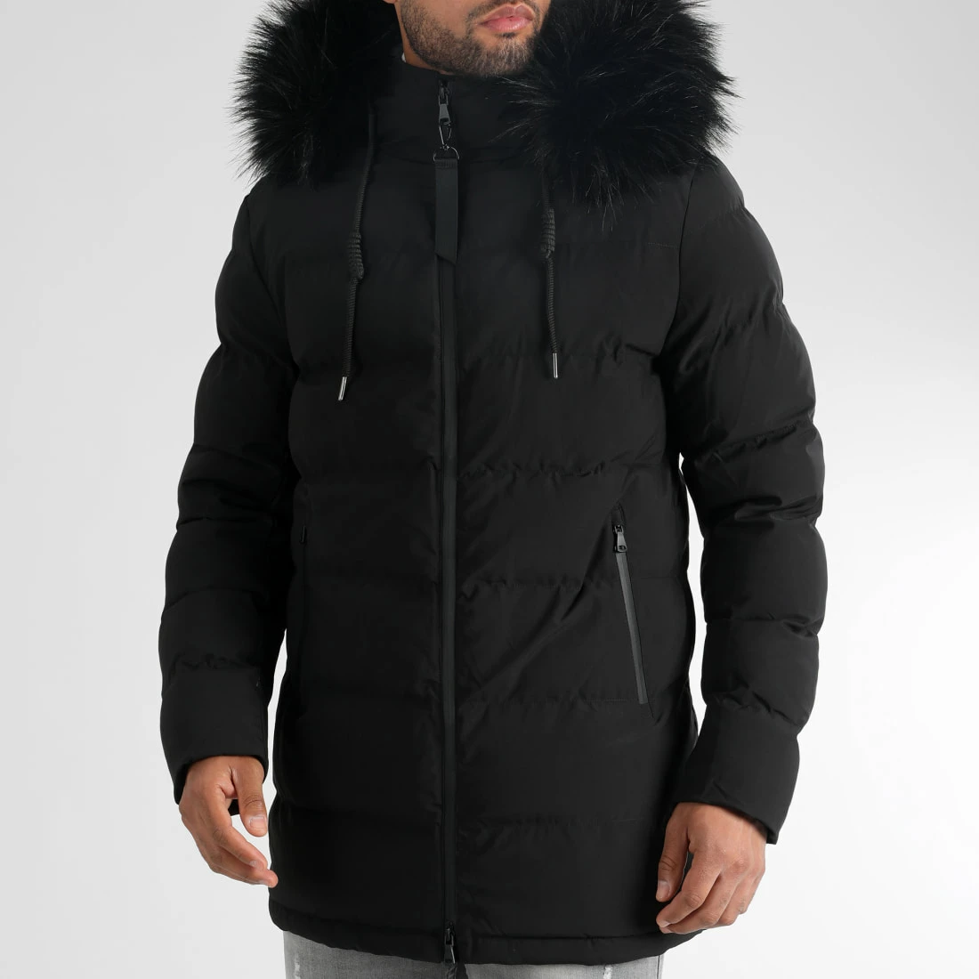 • doudoune tendance avec capuche et multipoche zippée sur la manche