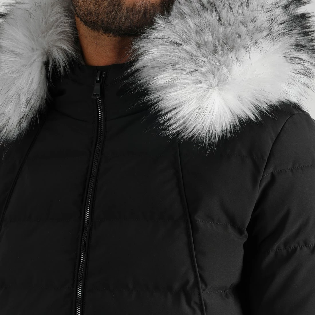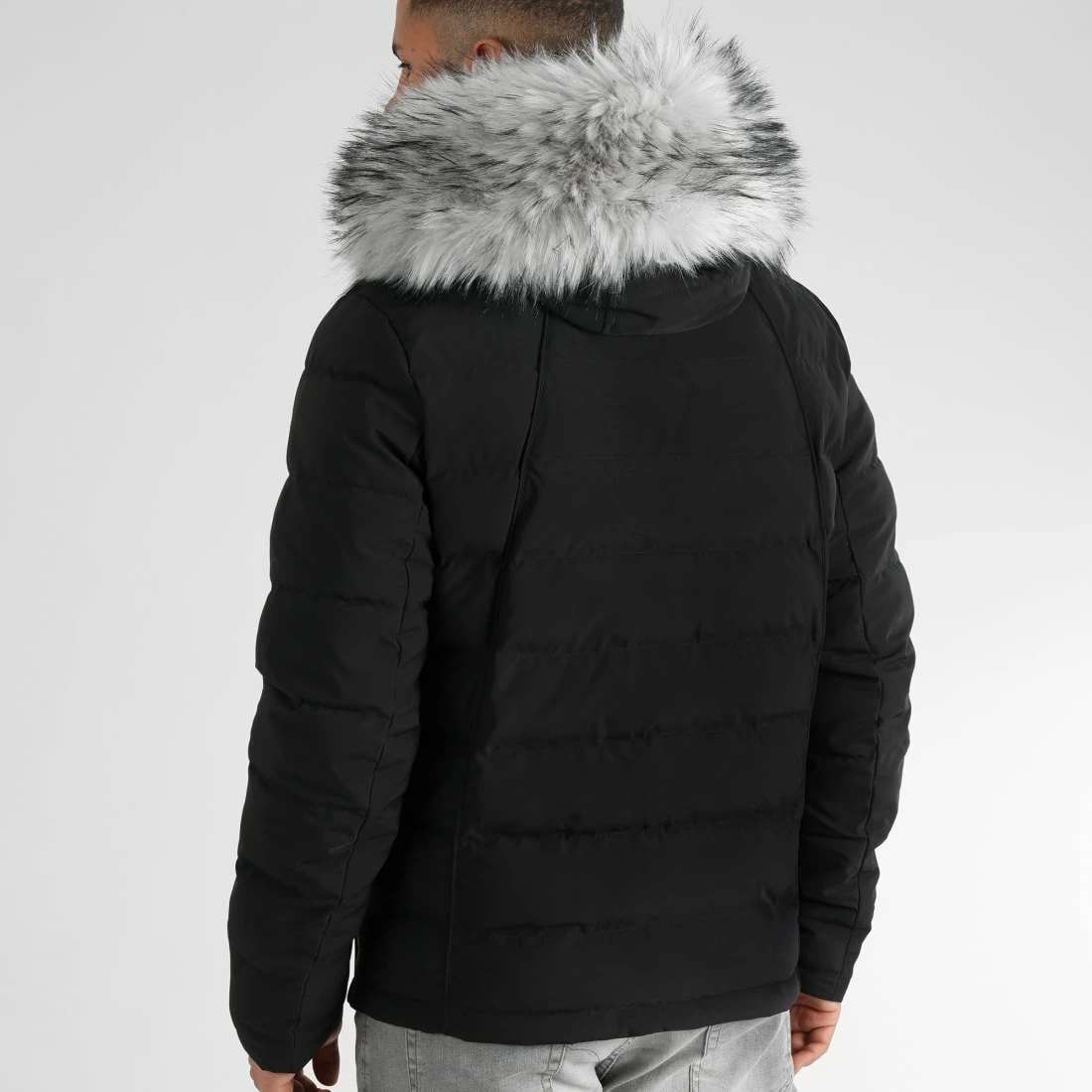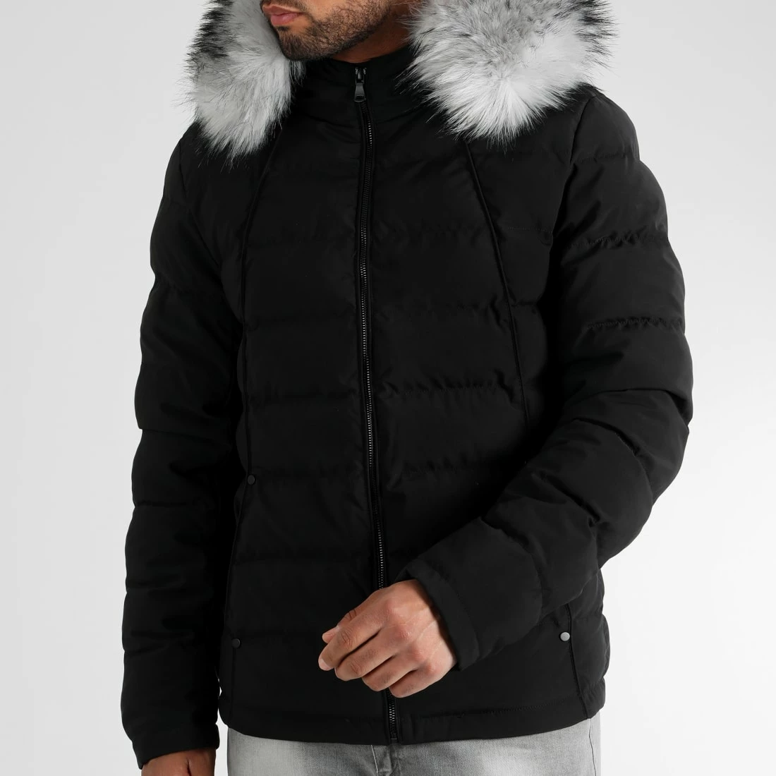 • Doudoune tendance avec capuche et multipoche zippée sur la manche