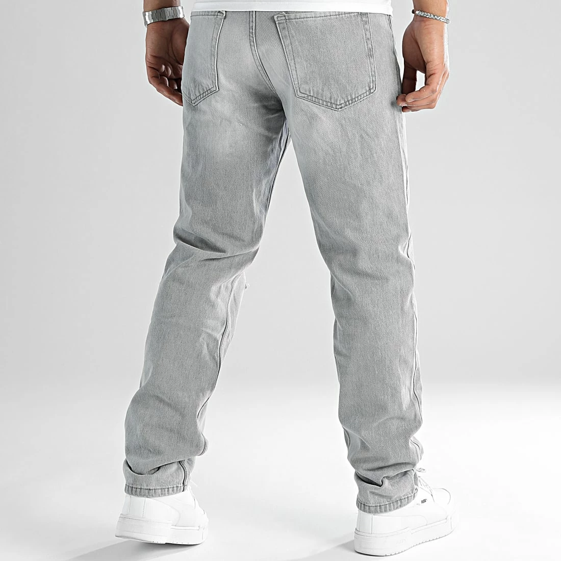 • Jean relaxed finition délavée et usée avec trous apparents