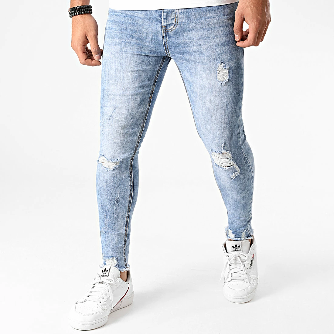 • Jean super skinny finition délavée et usée en coton stretch