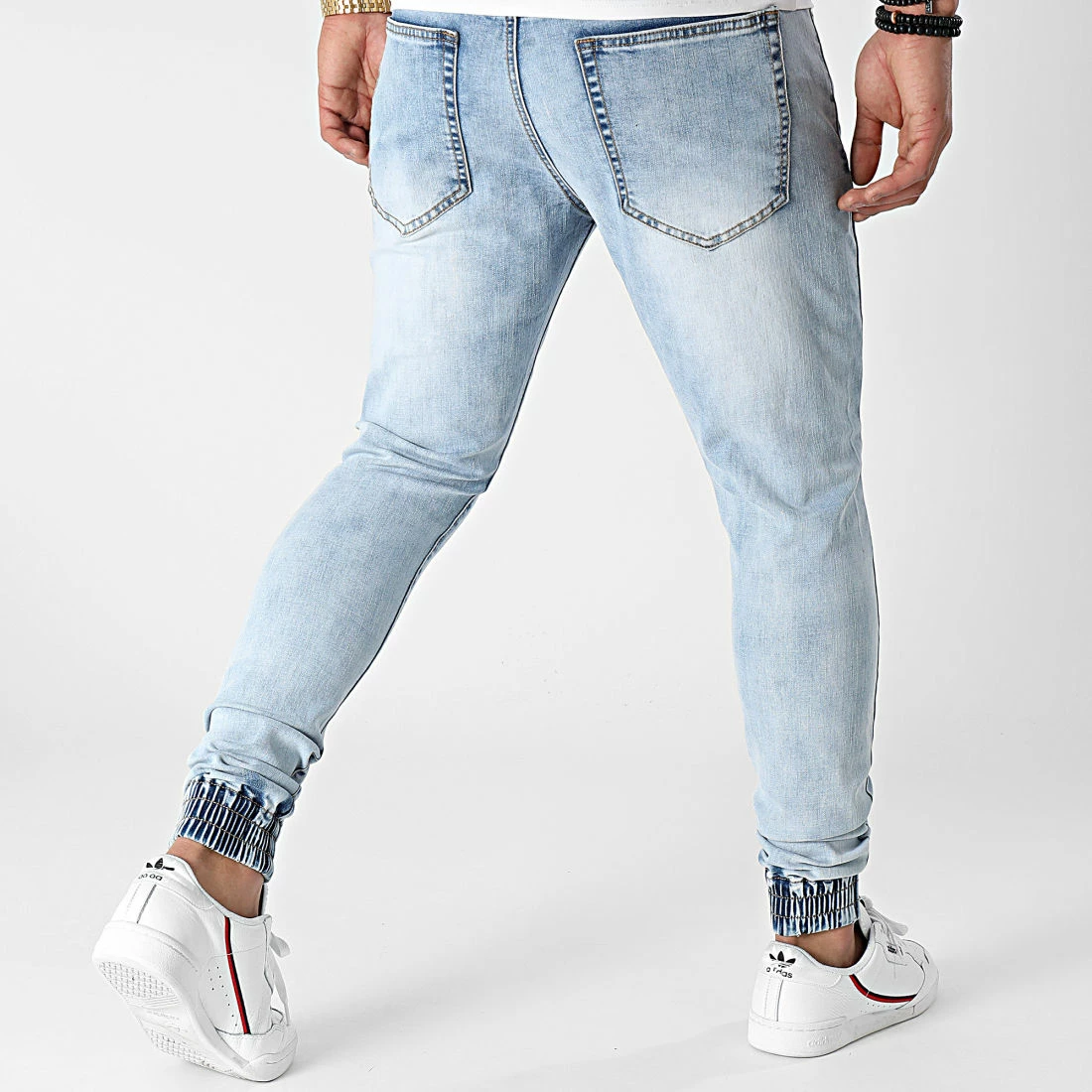 • Jogger pant fit aspect denim finition délavée