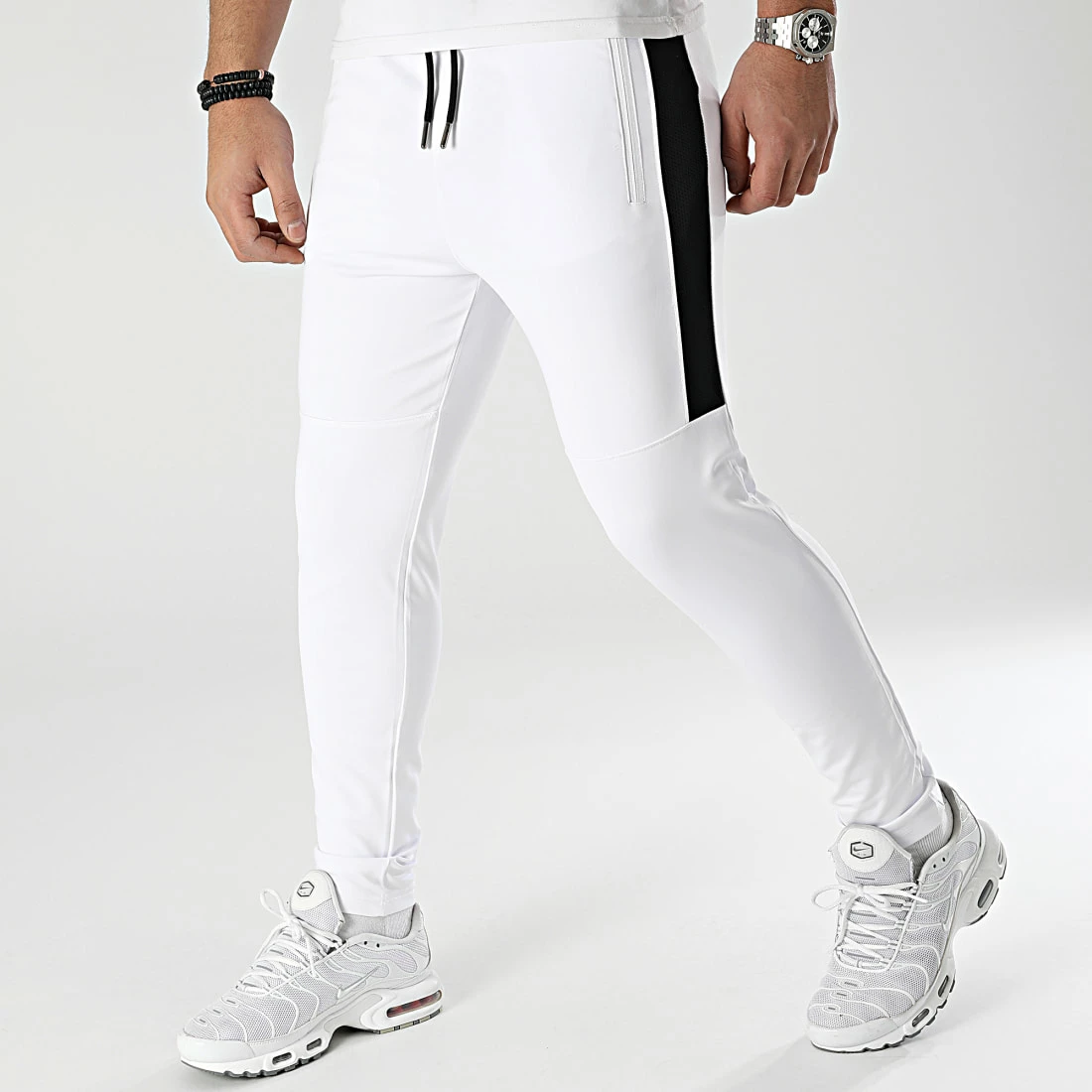 • Pantalon d’entraînement empiècement en mesh blanc