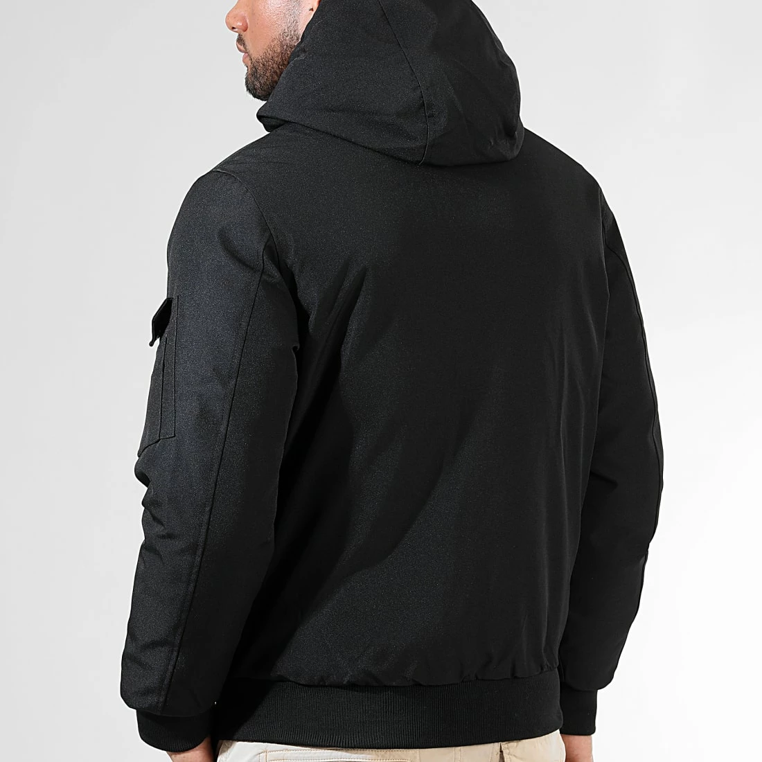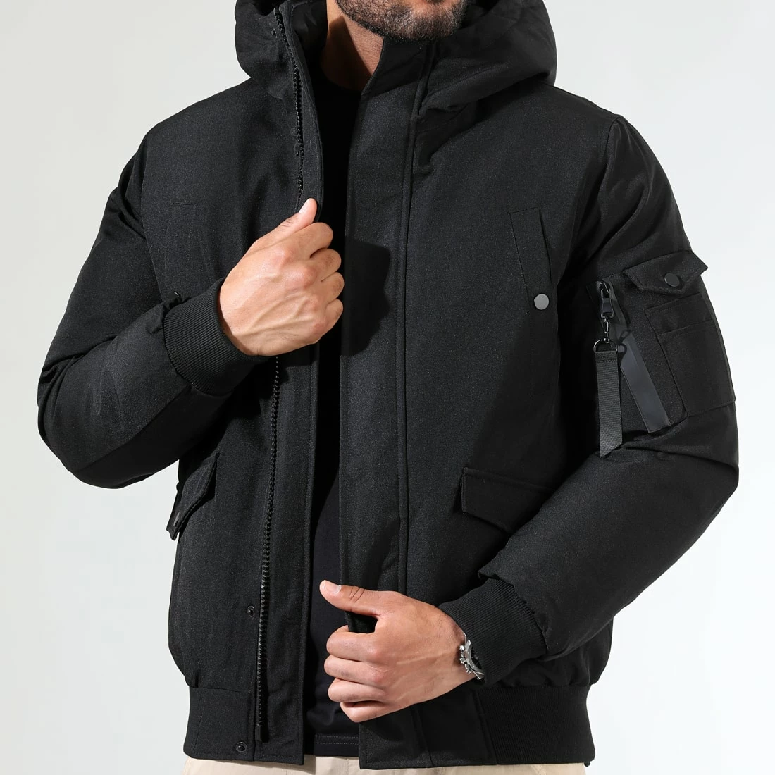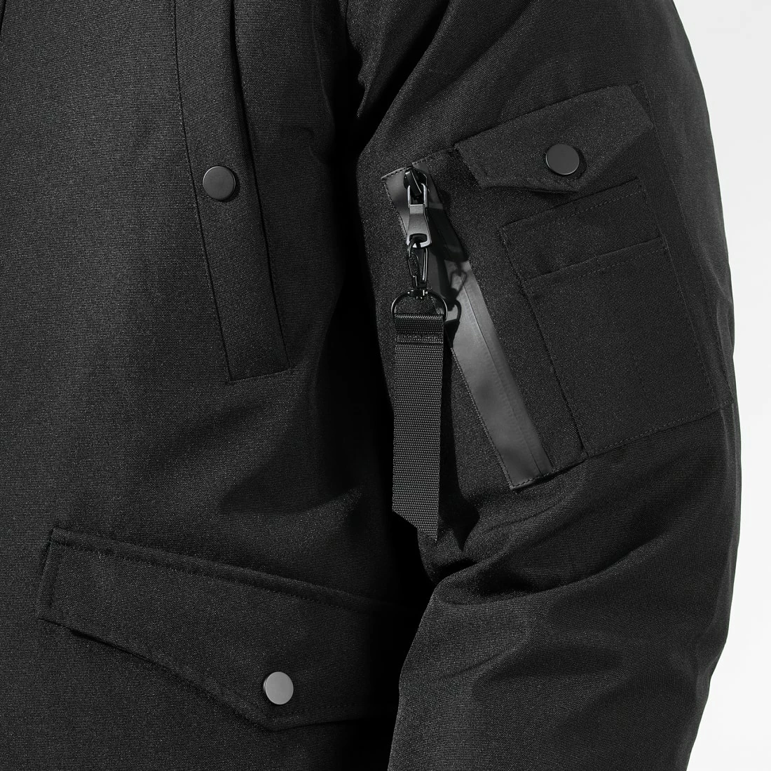 • Parka tendance avec capuche et multipoche zippée sur la manche