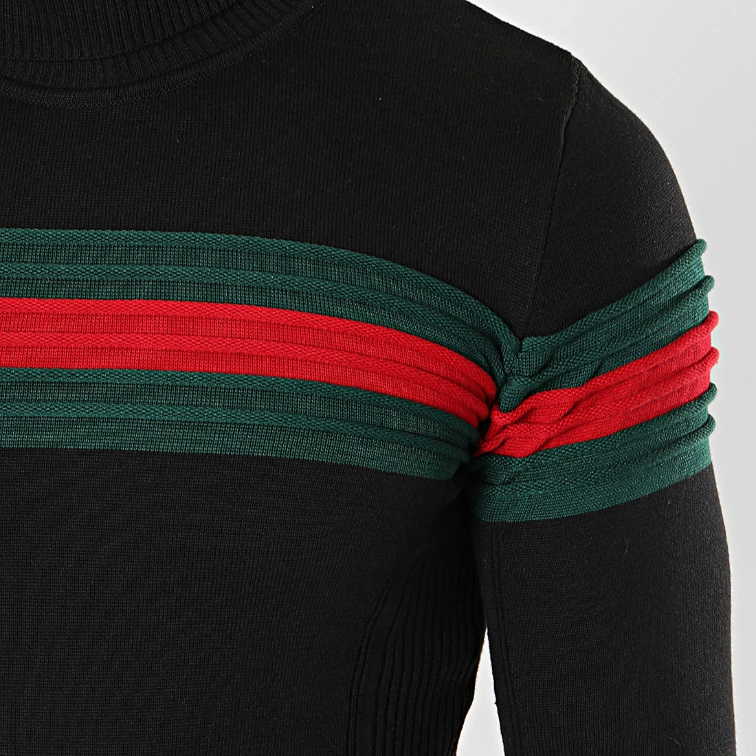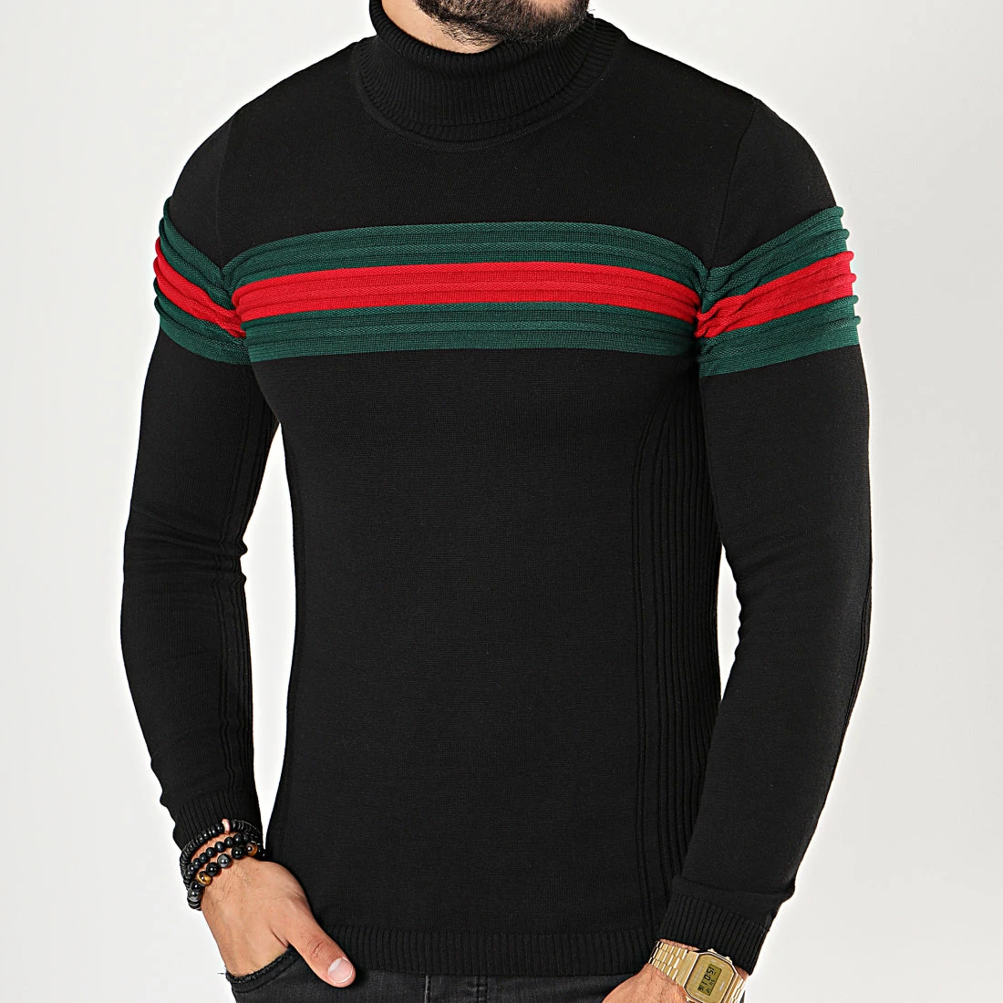 Acheter 👏 Pull Col Roulé Avec Bande Vert Et Rouge JUM-11 Noir de LBO ✨