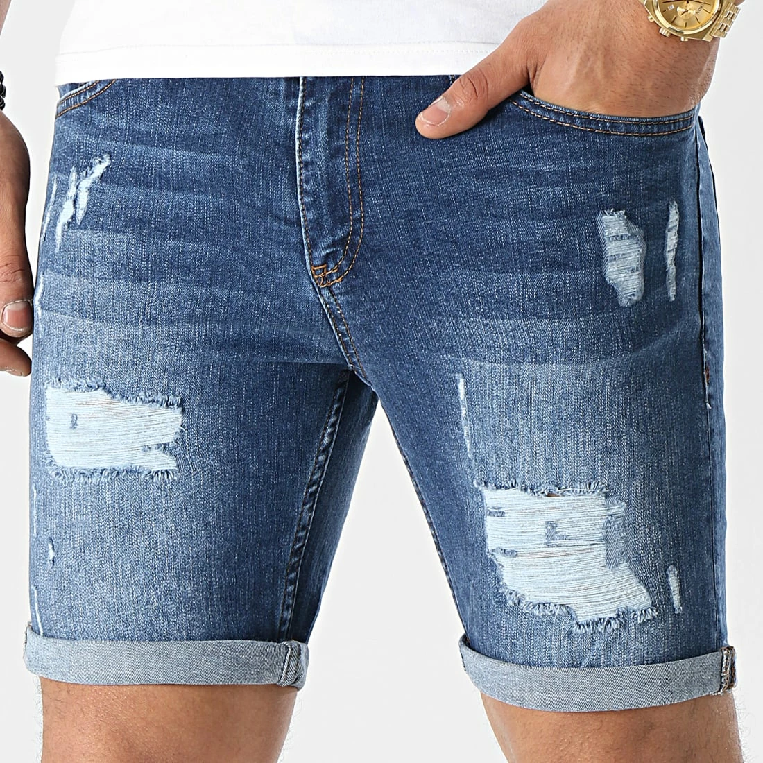 Le moins cher ✔️ Short Jean Skinny Fit Avec Dechirures 1468 Denim Bleu Medium de LBO 💯