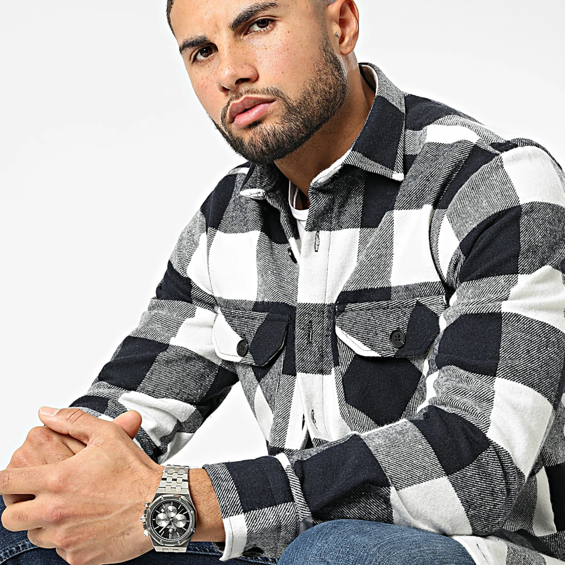 Budget 😀 Surchemise A Carreaux 0110 Bleu Marine Blanc de LBO 😀