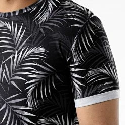 Grosses soldes ⌛ Tee 👕 Shirt Oversize Imprimé Avec Revers 2455 Tropical Blanc Vert de LBO 👍