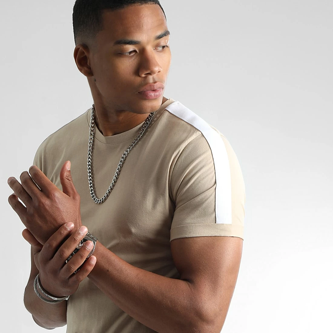 • Tee shirt en coton léger brodé bande sur les manches