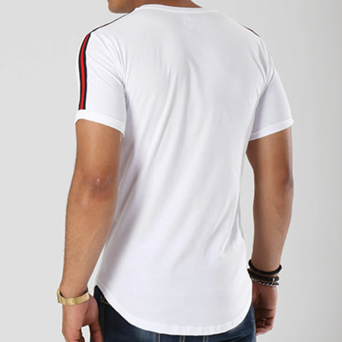 Tout neuf ❤️ Tee 👚 Shirt Oversize Avec Bandes Noir Et Rouge 454 Blanc de LBO ❤️