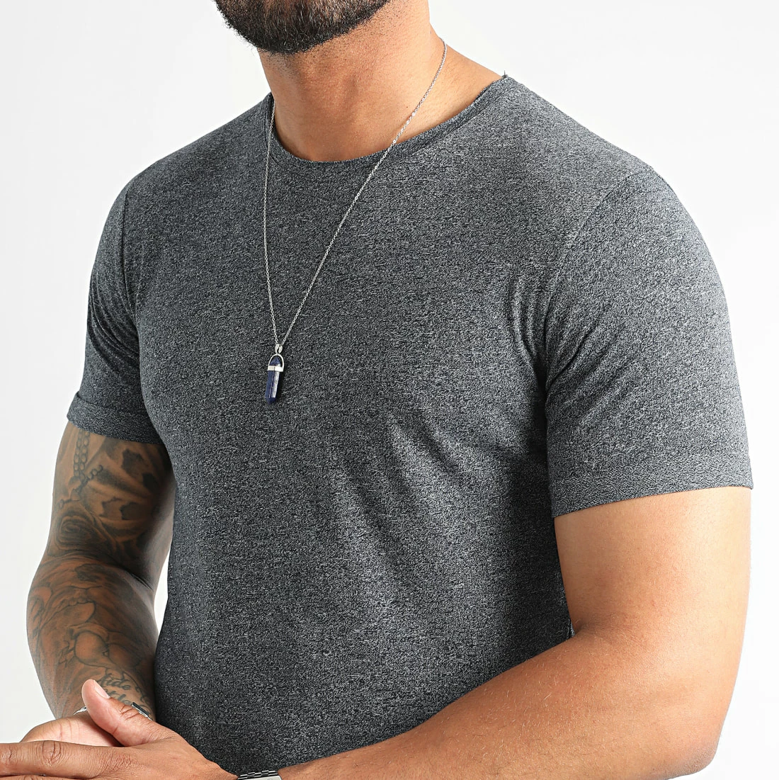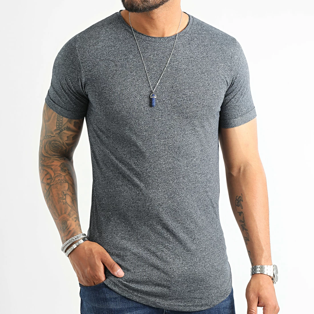 Coupon 👏 Tee 👕 Shirt Oversize Avec Revers 2482 Bleu Marine Chiné de LBO 🛒
