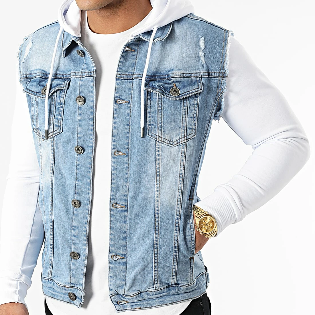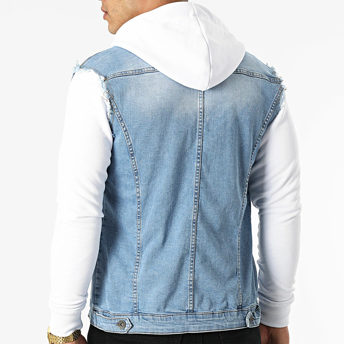 De gros ⌛ Veste Jean A Capuche 2258 Bleu Denim Blanc de LBO 😀