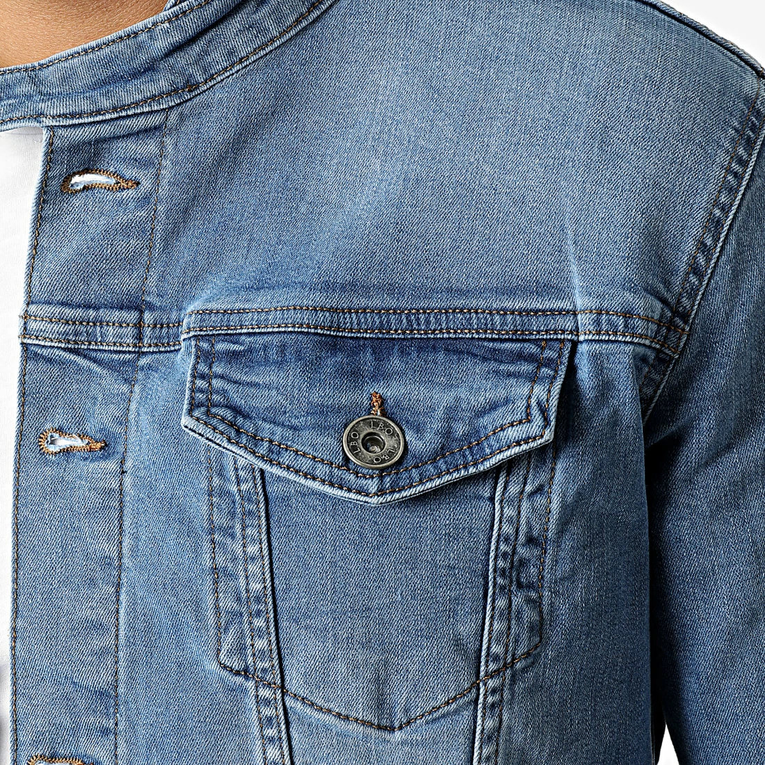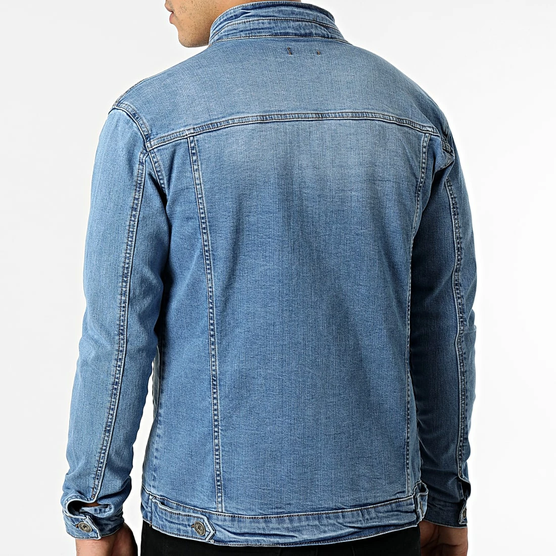 • Veste en jean délavée avec col biker