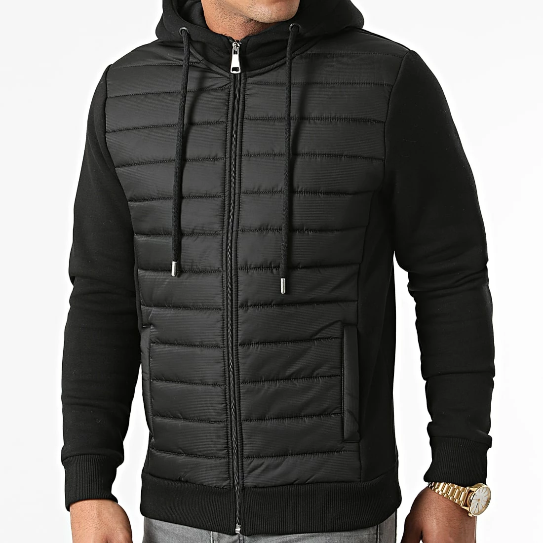 • Veste zippée bimatière avec capuche