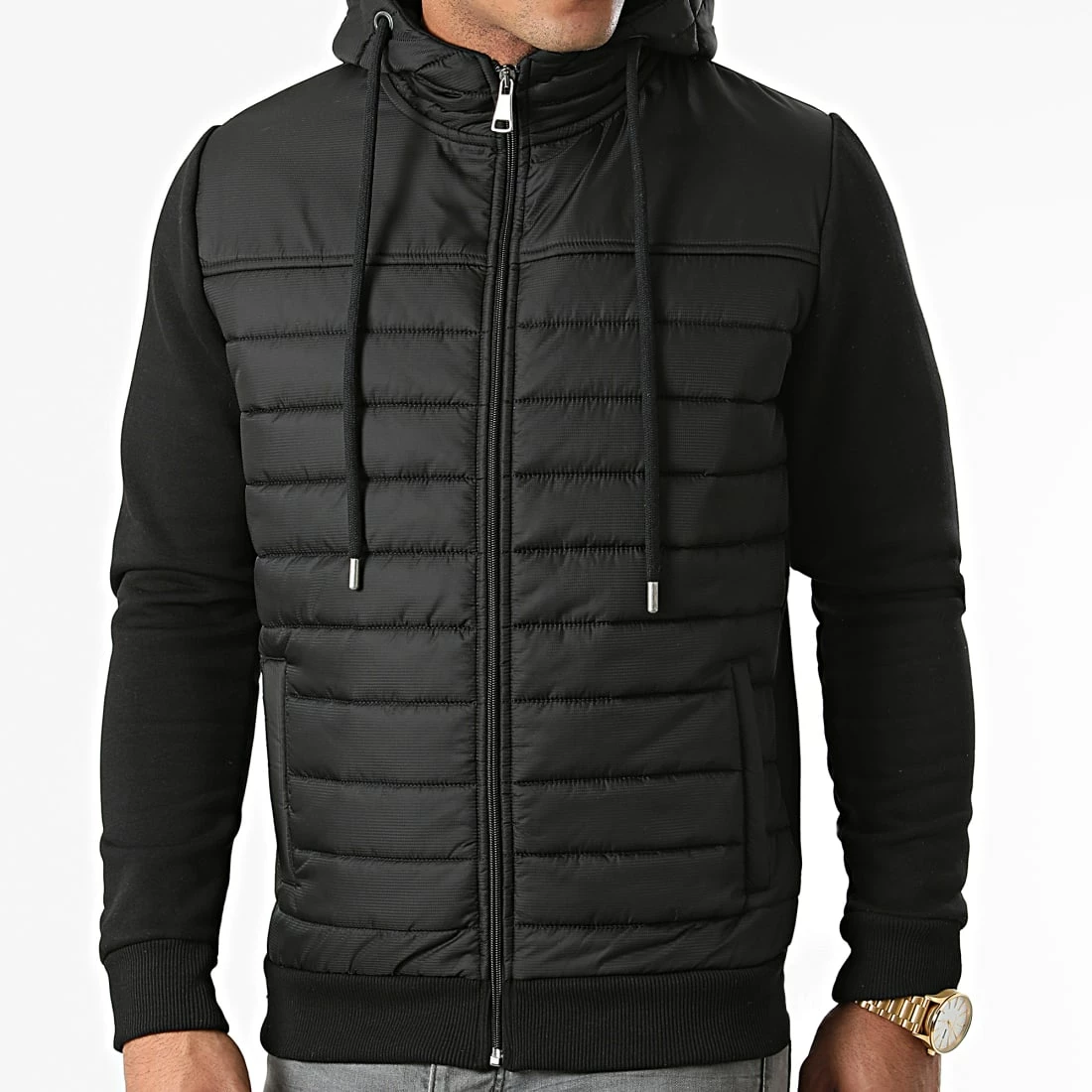 • Veste zippée bimatière avec capuche